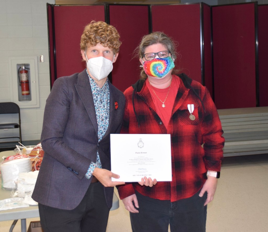 MLA Janis Irwin dropped by Boyle McCauley News‘ AGM on November 8th to present me with the Queen Elizabeth II’s Platinum Jubilee Medal to honour my work as a with the paper and my documentary photography of Edmonton’s activist scene. I didn’t even know I had been nominated until Janis called me a couple of weeks ago to tell me the news. To say I am honoured and humbled is an understatement. I’m pictured here with Janis, and in a group photo with the board and other volunteers with Boyle McCauley News.