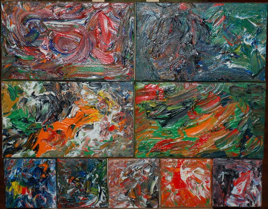 My abstract paintings involve the juxtaposition of shapes and colours, while often using commons household items in their creation. Visit PaulaKirman.com for more.